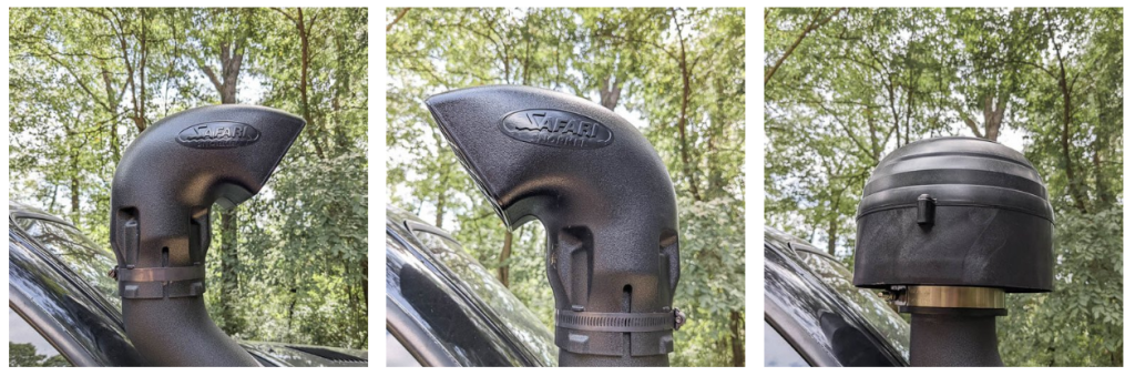 Насадка шноркеля типа Гриб почти такое же по принципу как циклон, собственно это тоже циклон, только без накопителя, что позволяет эффективно отводить воду. Пришел в офроад от тяжелой техники и универсален по регионам использования.