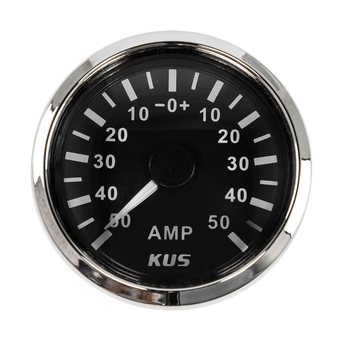 картинка Амперметр аналоговый -/+50 А, черный циферблат, нержавеющий ободок, д. 52 мм