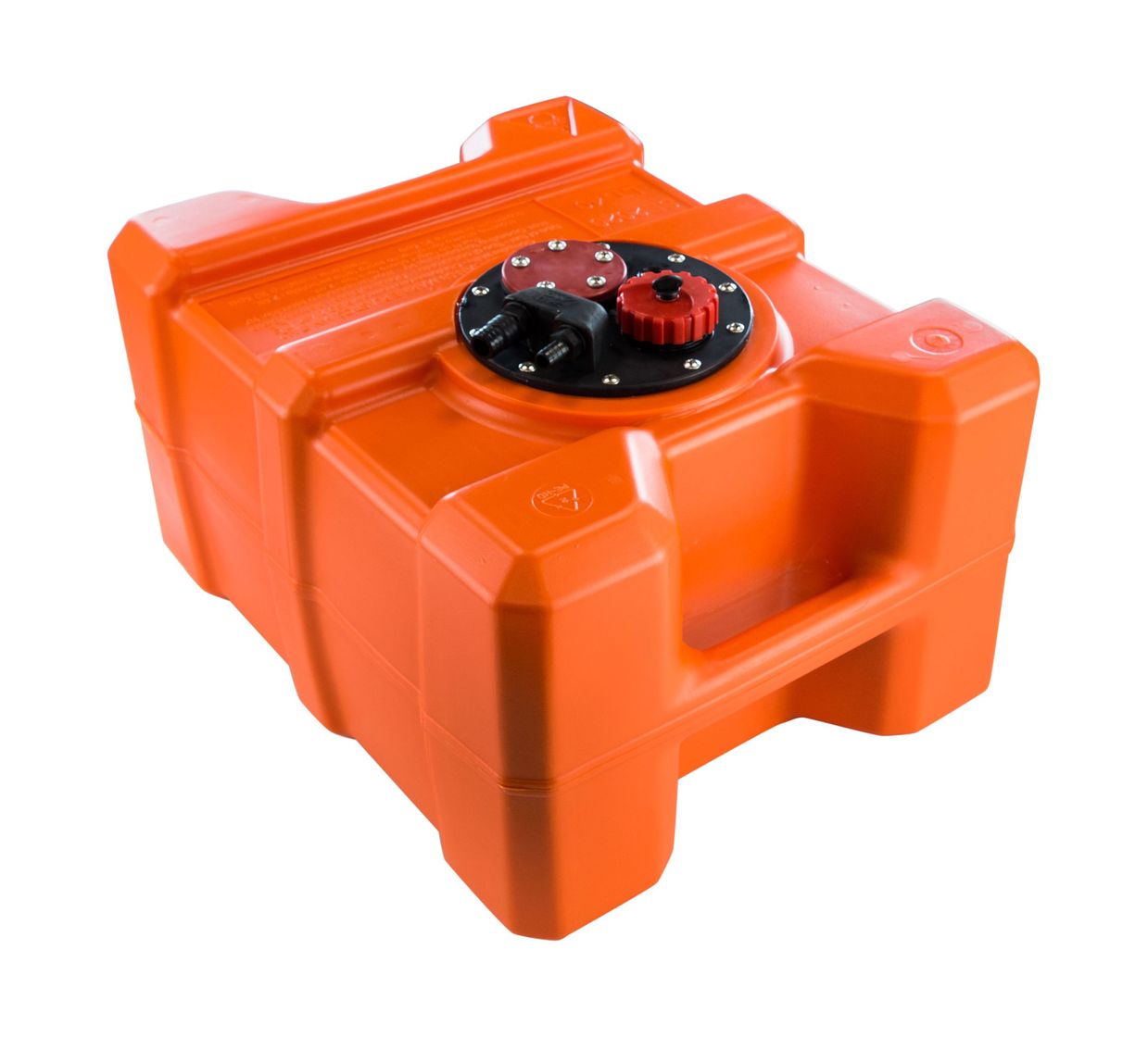 Универсальный стационарный топливный бак выполненный из пластика высокой плотности. Подходит для бензинового и дизельного топлива. На верхней стороне бака расположен инспекционный лючок, через который легко производить внутренний осмотр бака и его чистку. На крышке лючка расположены переходники "елочка" для присоединения топливного шланга и штуцера вентиляционного патрубка, заливная горловина, стандартное крепление для монтажа датчика уровня, отверстие со стандартной резьбой 1/4 NPT для установки штуцера обратного слива топлива. Крышка заливной горловины оборудована сапуном. Благодаря конструктивным особенностям и наличию двух ручек может использоваться в качестве переносного топливного бака.