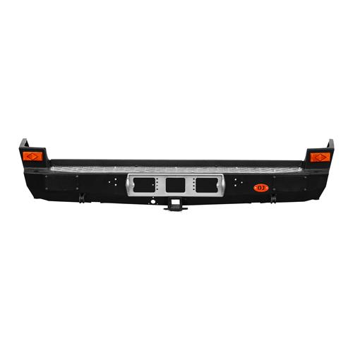 Задний силовой бампер на Toyota LC 100 (стандарт) с возможностью установки калиток. Вместо пластиковых катафотов бампер комплектуется двумя световозвращателями на самоклеящейся основе.