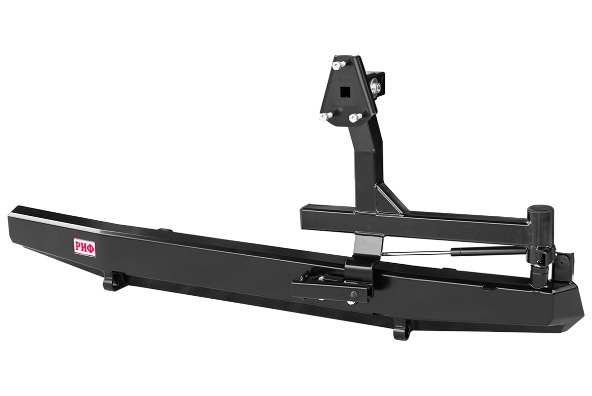 Задний силовой бампер РИФ надежно защитит кузов автомобиля на бездорожье или в городе в случае непредвиденных инцидентов. Бампер оборудован упорами под хай джек и буксирными проушинами для работы с рывковой или буксировочной стропой.