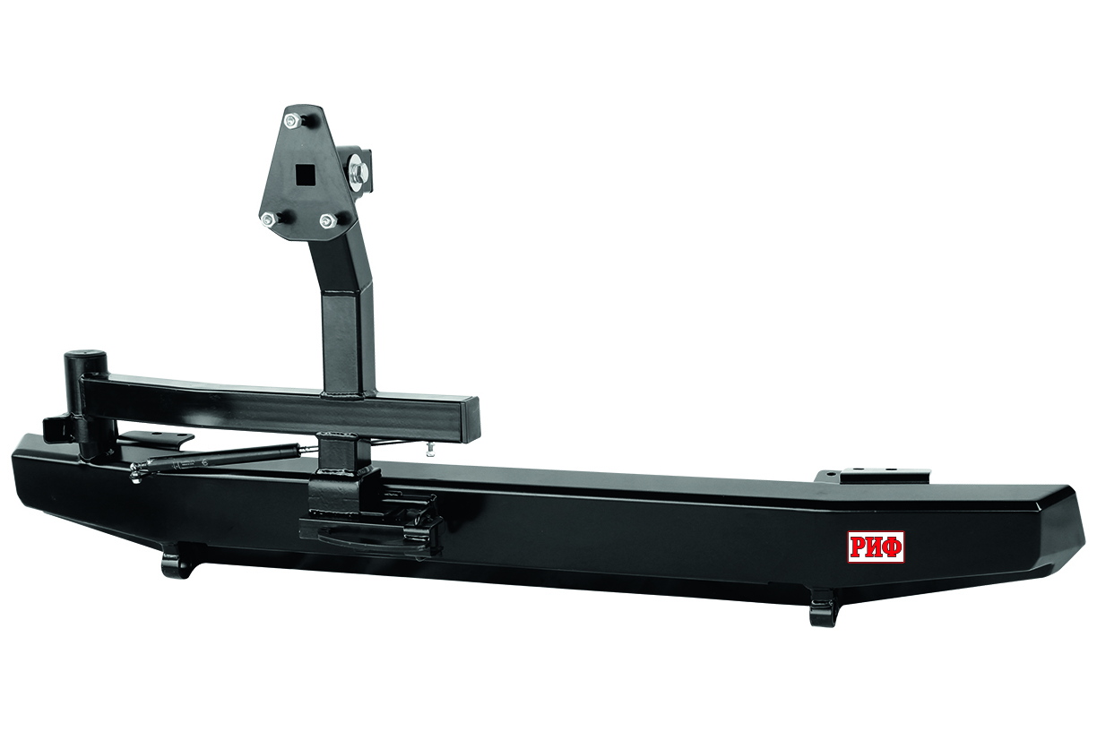 Задний силовой бампер РИФ надежно защитит кузов автомобиля на бездорожье или в городе в случае непредвиденных инцидентов. Бампер оборудован упорами под хай джек и буксирными проушинами для работы с рывковой или буксировочной стропой.