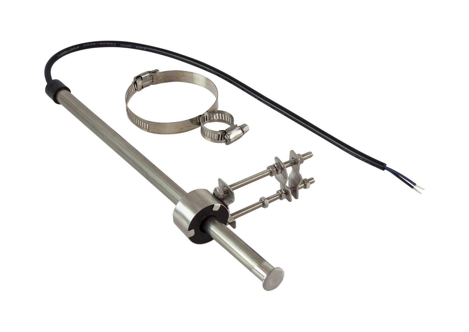 Датчик указателя (аксиометра) угла отклонения руля. Устанавливается на гидравлический цилиндр рулевого управления. Закрепляется на цилиндре с помощью спаренного хомута из нержавеющей стали. Длина сенсорной трубки 300 мм.
