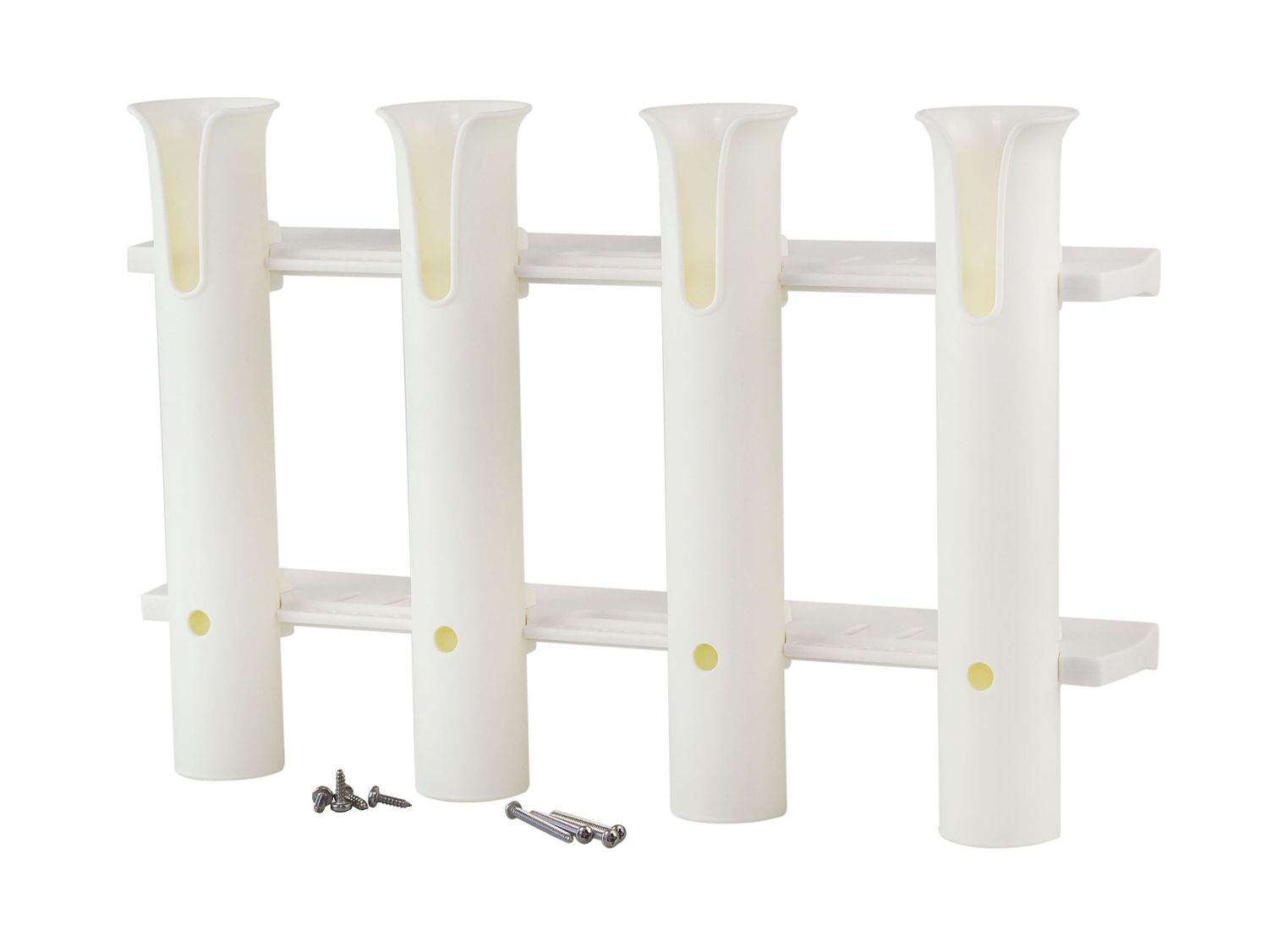 Держатель четырёх удилищ с горизонтальным креплением. Выполнена из прочного белого пластика.