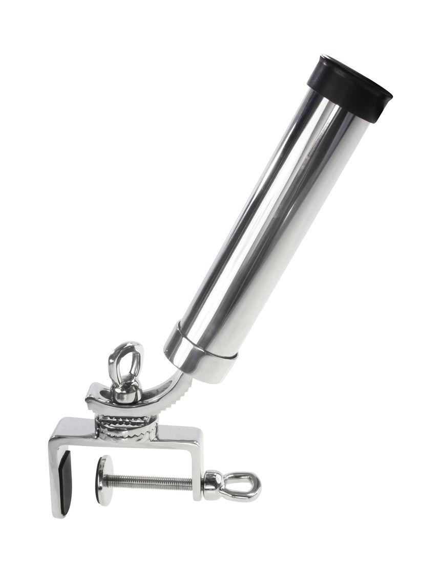 Держатель спиннинга со струбциной. Устанавливается на борт или транец судна. Максимальная толщина транца или борта 100 мм.