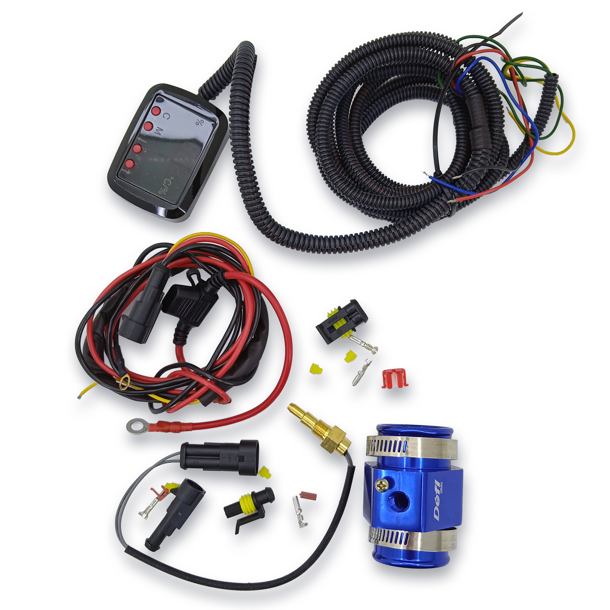 - Комплект проводки для установки на автомобиль,фланец универсальный,датчик,блок управления,крепеж.