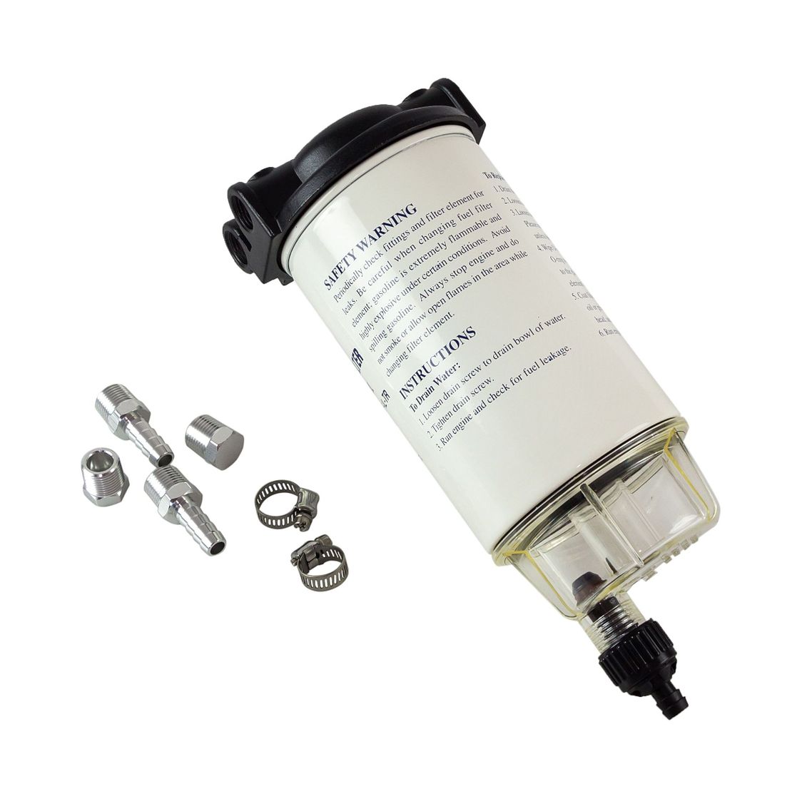 Фильтр-сепаратор для топливных систем четырехтактных двигателей. Оборудован установочным алюминиевым кронштейном и прозрачным водосборником. Применяется для защиты от конденсата и вредных примесей топливной системы, образующихся в процессе эксплуатации топливного бака.
