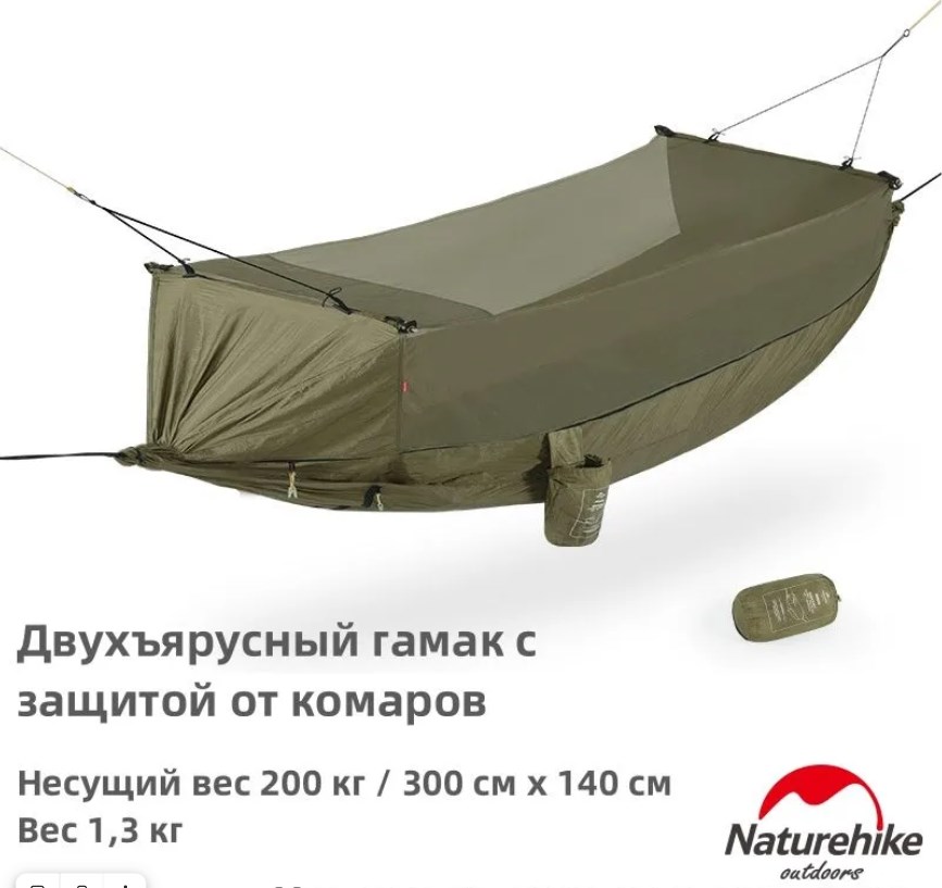 Легкий гамак Naturehike с москитной сеткой будет отличным попутчиком не только в дальних путешествиях, но и в выходные на даче.