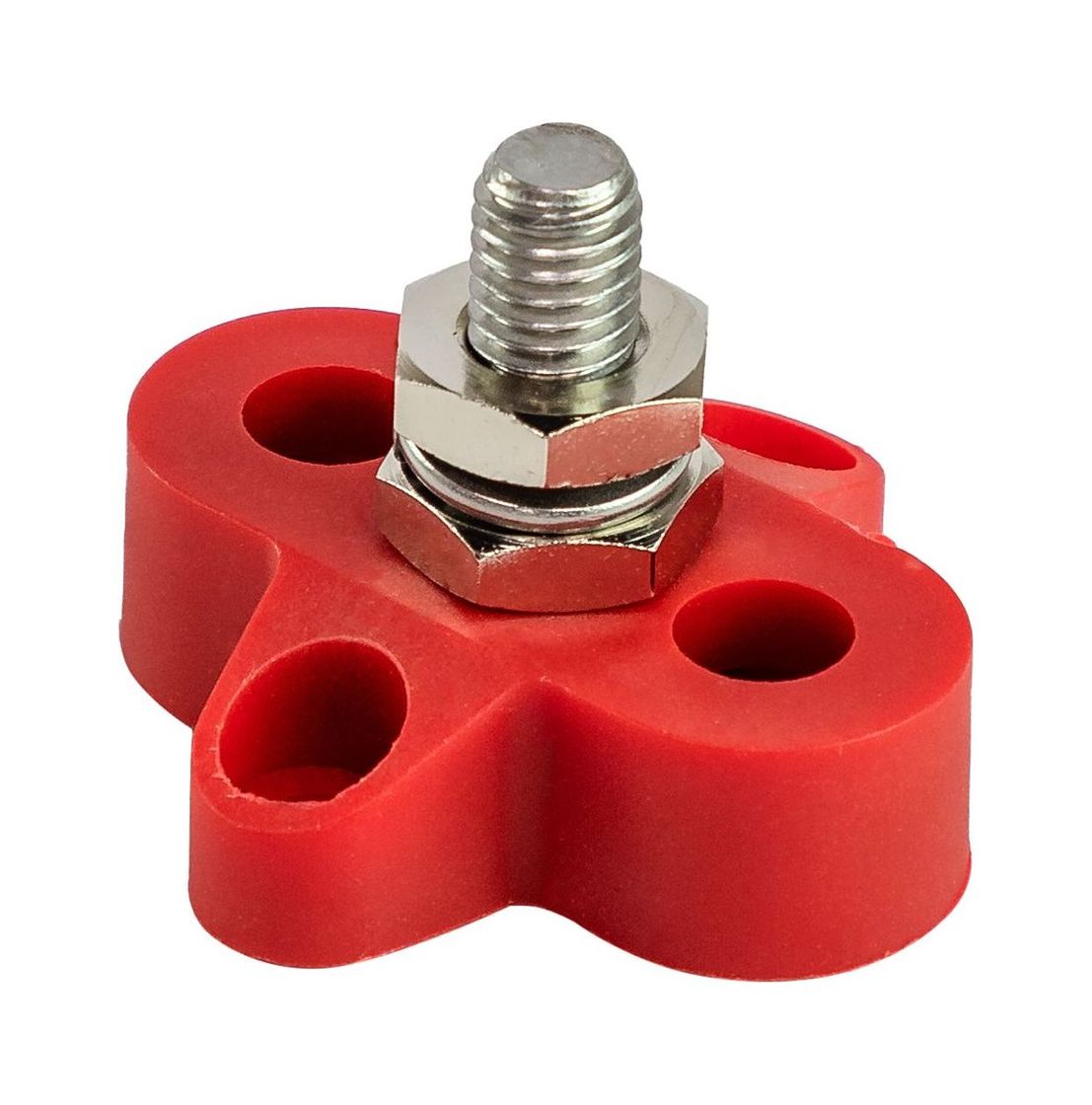 Клемма плюсовая с резьбовым зажимом. Основание клеммы изготовлено из армированного нейлона, контакт из никелированной латуни.