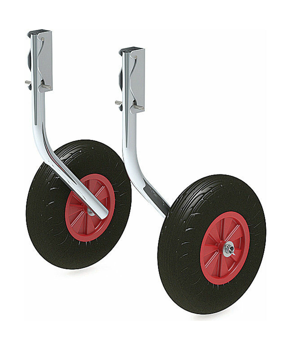 Транцевые колеса предназначены для ручной транспортировки надувной лодки. Данный тип колес имеет механизм защёлки, что позвляет легко и удобно снимать и ставить колеса при смене положений. Допустимая нагрузка 150 кг. Крепеж, входящий в комплект, позволяет устанавливать колеса на транец толщиной до 32 мм. Каркас изготовлен из оцинкованной стали.