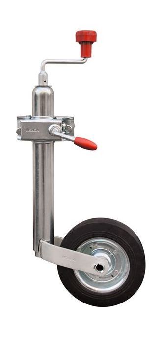 Оцинкованное опорное колесо (Ø48) с упорным подшипником рукоятки, в комплекте с элементами крепежа, для установки на прицепы МЗСА с полной массой до 750 кг. Регулируется по высоте, обеспечивает горизонтальное положение прицепа и облегчает его перемещение без тягача.