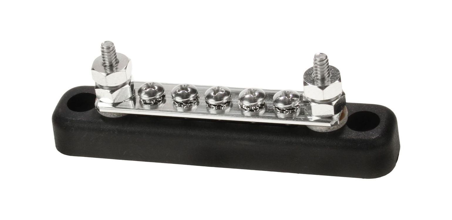 Электромонтажная клеммная колодка на 2 силовых и 5 вспомогательных контактов. Применяется для винтового соединения кабелей. Напряжение до 48 В, максимальный ток для силовых контактов - 100 А.