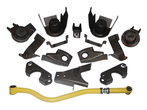 Комплект для переделки передней рессорной подвески на пружинную военный мост с тягой