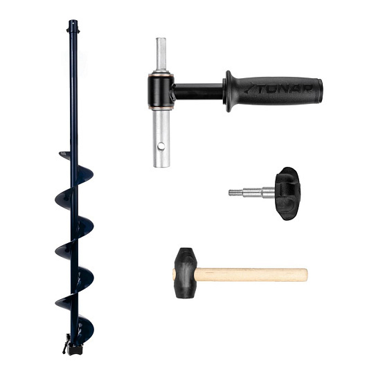 Комплект под шуруповерт состоит из шнека Комплект под шуруповерт состоит из шнека ALTAY ENERGY 150R с правым вращением, адаптера и прорезиненного молоточка и предназначен для комфортного бурения льда с помощью шуруповерта.