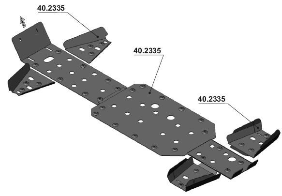 Полный комплект защиты включает защиту днища и рычагов.
