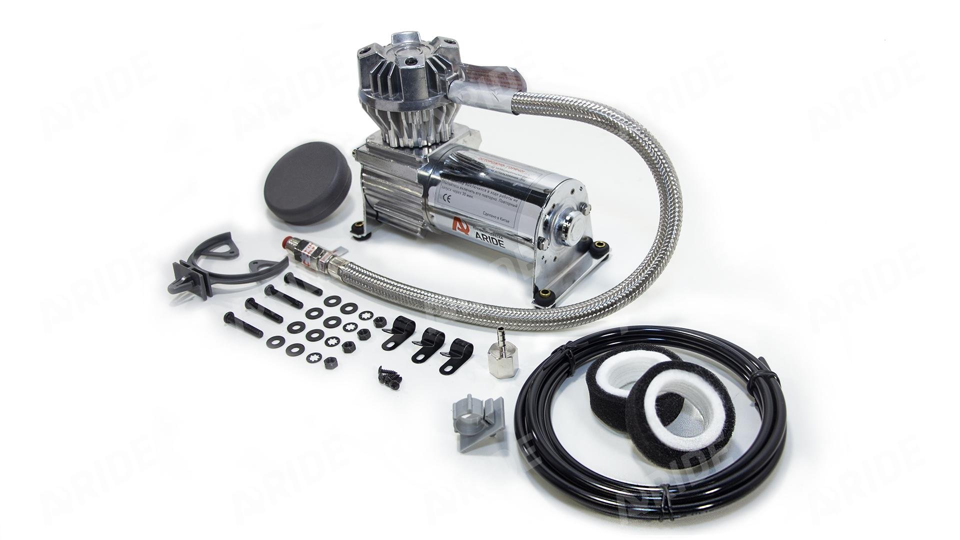 Компания Aride предлагает высокопроизводительные насосы для накачки шин, воздушные компрессоры, аксессуары. Линейка безмасленых воздушных компрессоров представлена моделями на 12V и 24V разной мощности.