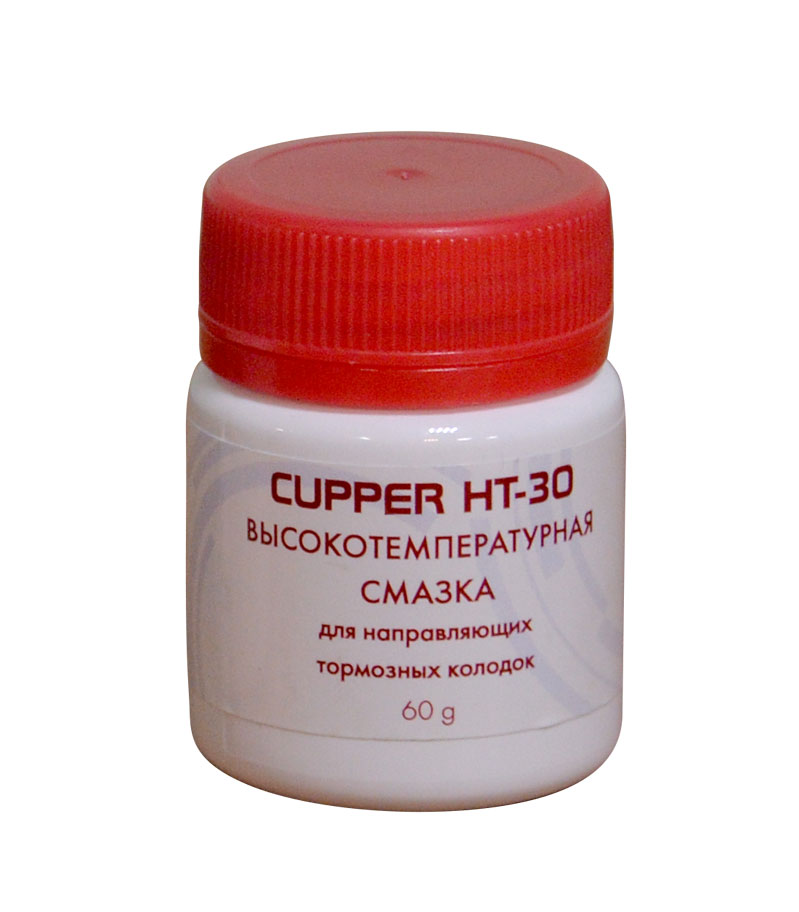 Пластичная высокотемпературная смазка с металлоплакирующим эффектом CUPPER HT-30 предназначена для смазывания направляющих пальцев, колодок, монтажных скоб, противоскрипных пластин и других подвижных элементов в тормозных механизмах. Обладает высокой механической и термической стабильностью. Сохраняет рабочие свойства при температурах от -60 до +400 С (допускается кратковременное повышение температуры до +450 С). Устойчива к воздействию воды, химических реагентов и тормозной жидкости. Имеет высокие антикоррозионные свойства, не оказывает негативного воздействия на неметаллические элементы тормозной системы и совместима с большинством эластомеров.