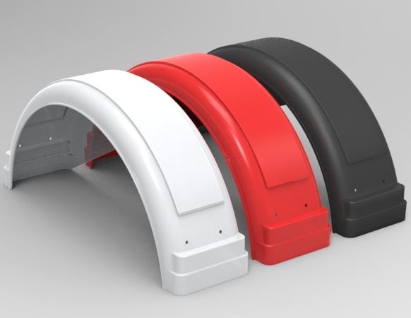 Эластичное и прочное крыло из пластика для прицепов, оснащенных колесами с дисками 13 и 14 дюймов Имеет симметричную форму, то есть может быть установлено с любой стороны прицепа.