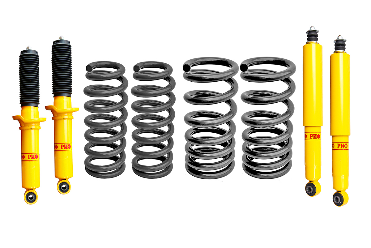 Основное отличие от "мягкого" варианта лифт-комплекта - рессоры и пружины большей грузоподъемности.Данный лифт-комплект рекомендуется к установке на автомобили, оснащенные силовыми бамперами, доп баками, лебедками и прочим внедорождным оборудованием.