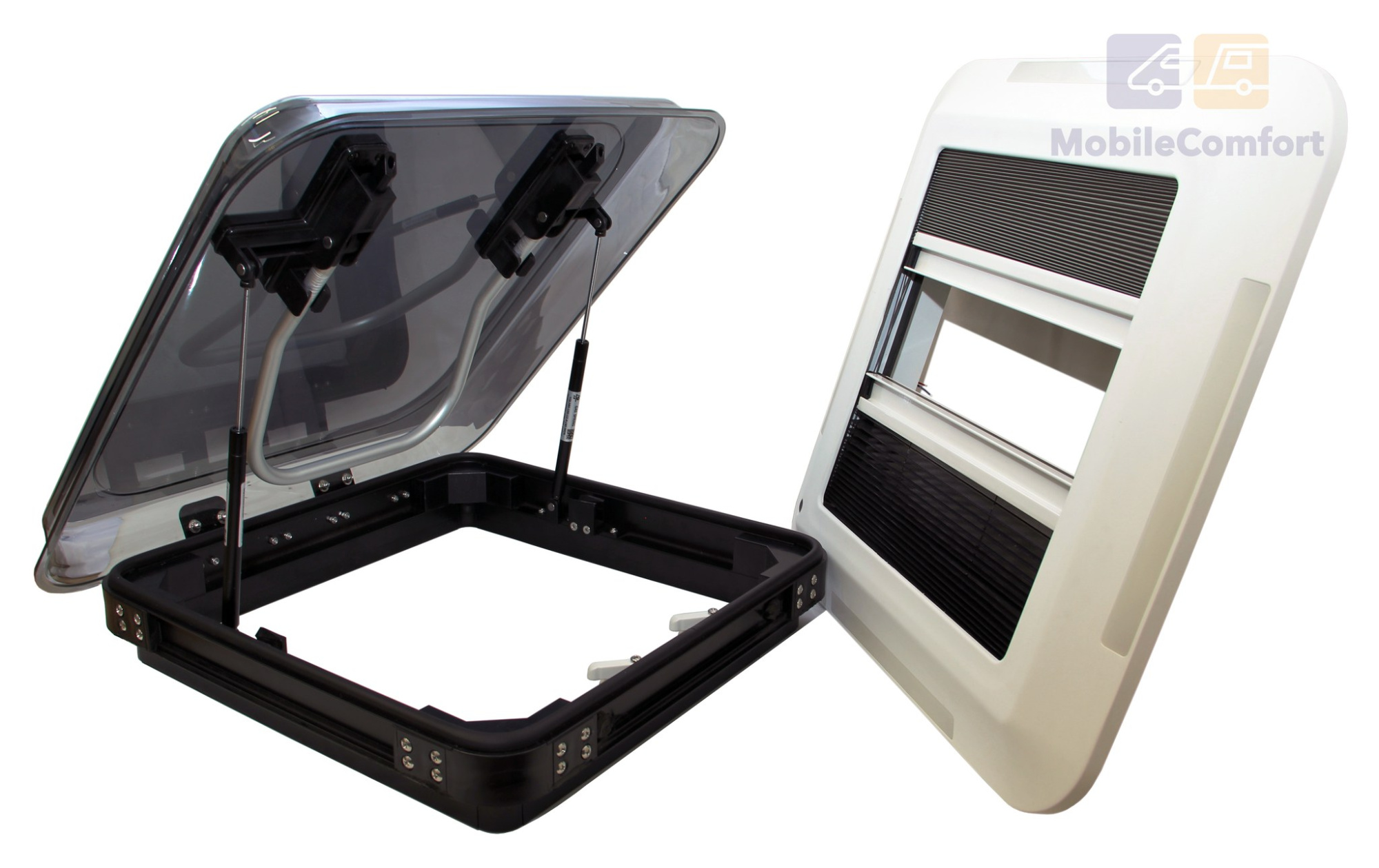 Линейка потолочных люков MobileComfort отличается высоким качеством и долговечностью. Благодаря внешнему аэродинамическому профилю верхней крышки, не требуется установка дополнительного спойлера. Запатентованное резиновое уплотнение на внутренней раме люка гарантирует водонепроницаемость. Люк изготовлен из высококачественных материалов. Алюминиевая усиленная рама, купол люка двойное акриловое стекло с тонировкой устойчивое к ультрафиолетовому излучению. Поставляется с солнцезащитной плиссированной шторкой и москитной сеткой. Благодаря таким бесспорным преимуществам, как простота в уходе, наличие затемняющей шторы и москитной сетки, этот люк обеспечивает комфорт и удобство в дороге. Поставляется двух типоразмеров 400х400 и 700х500 мм