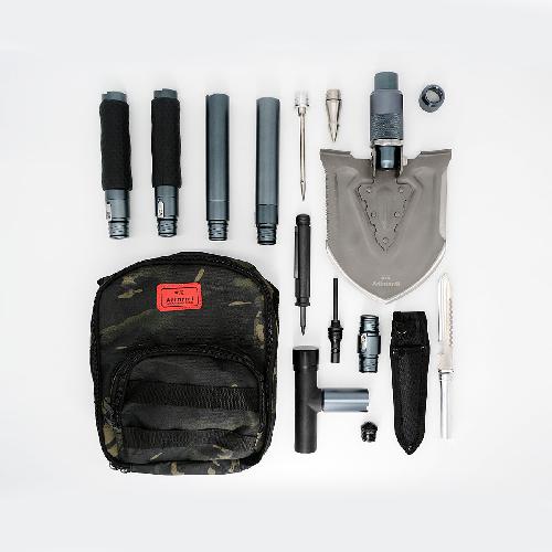Описание лопаты Adimanti J-220A: Пользу и функциональность лопаты в полной мере под силу оценить только истинным искателям приключений, так как большинство приспособлений помимо своего хозяйственно-бытового назначения, рассчитаны на использование в экстремальных, жёстких условиях дикой природы. Инструмент изготовлен исключительно из качественных материалов, которые обеспечивают надёжность и долговечность изделия. Функциональные насадки, формирующие рукоять лопаты, выполнены из высокопрочного алюминиевого сплава, а само рабочее полотно — из высокоуглеродистой стали. Общая длина модели в рабочем состоянии равна 78.8 см, ширина полотна — 12.8 см. Лопата поставляется в комплекте с поясной сумкой, которая предполагает удобную транспортировку и организованное хранение инструмента. Ещё одно решение, направленное на повышение эксплуатационных характеристик, — это текстурированное покрытие рукояти, которое исключает скольжение и повреждения при длительных работах с инструментом. Инструментальная подборка включает в себя следующие орудия и приспособления: - лопата: 1 шт. - удлинитель: 4 шт. - набор бит+отвертка: 1 комплект - свисток: 1шт - чехол для ножа: 1 шт. - огниво: 1 шт. - нож: 1шт - стеклобой: 1 шт. - вилка для рыбы: 1 шт. - молоток: 1шт - ледоруб: 1 шт. - сумка: 1шт На все изделия прилагается гарантия 1 год, позволяющая любому обладателю оригинального продукта, получить обоснованное обслуживание.
