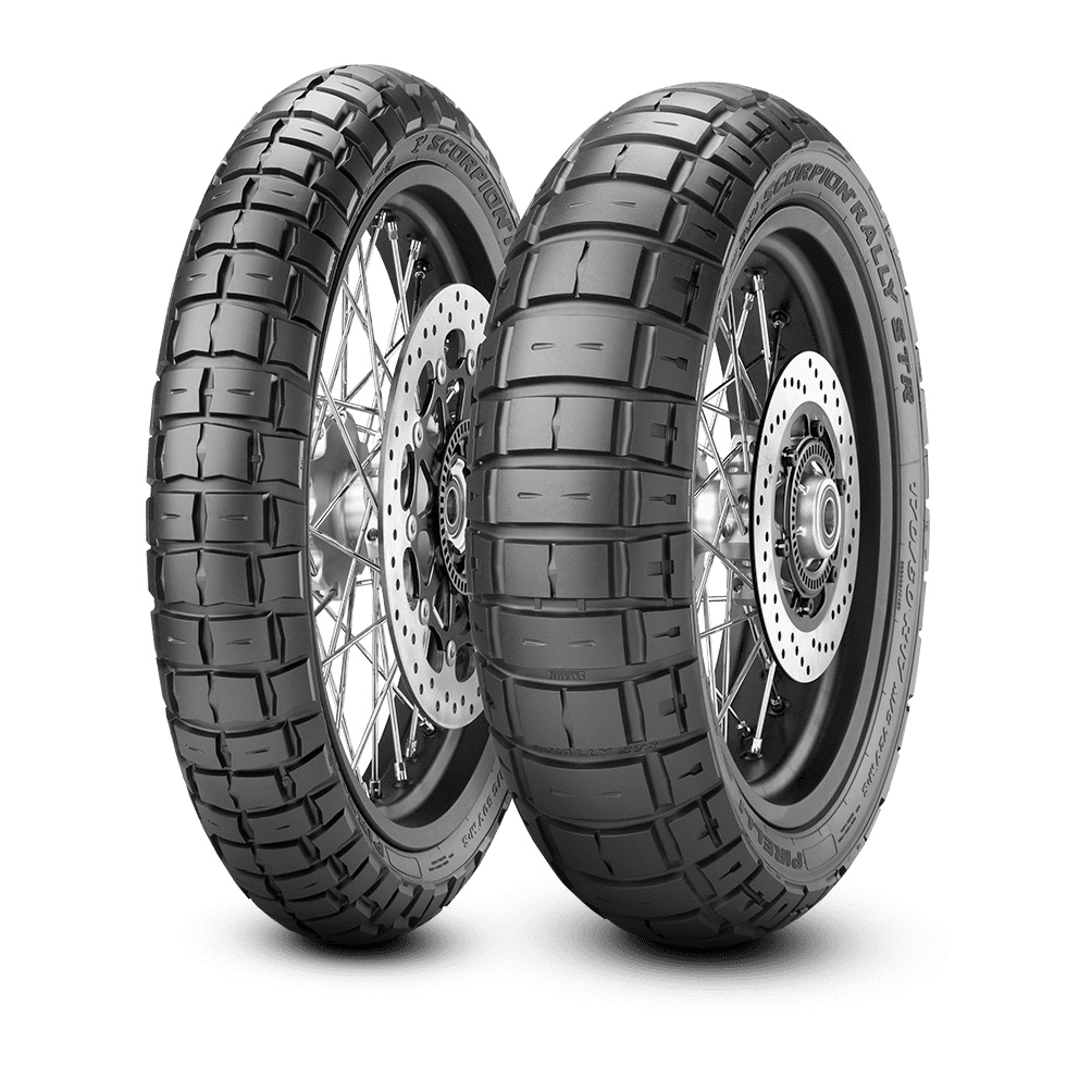 Эндуро-шина с зубастым протектором для приключений без границ SCORPION™ RALLY STR в размере 150/70R17 162/160A6 Дорожные и внедорожные туристические шины Пирели Скорпион ралли СТР для райдеров, которым нужны шины с зубастым протектором, но которым требуется сцепление, безопасность на мокрой дороге и комфорт как на дороге, так и за ее пределами. Шина, сочетающая в себе значительные возможности для грунтовых и каменистых дорог и отличные характеристики для дорог общего пользования. Технологические инновации обеспечивают сцепление на грунте, устойчивость на высоких скоростях, маневренность на дороге и сцепление в любых условиях езды.  Новый состав с высоким содержанием диоксида кремния обеспечивает улучшенное сцепление как на сухих, так и на мокрых поверхностях, стабильность и превосходную стойкость к истиранию.  Увеличенная ширина и длина контура шины обеспечивает большее пятно контакта для лучшей устойчивости.  Блоки стали длиннее и шире, а продольное расстояние между каждым рядом выступов было уменьшено для увеличения пятна контакта без ущерба для сцепления на бездорожье.  Тепло, вырабатываемое при высокой скорости, распределяется по более широкой поверхности, что предотвращает поломку шашки. Широкий диапазон рабочих температур, включая влажные условия. Сцепление в любых условиях, устойчивость к разрывам и превосходный пробег. Увеличенная площадь пятна контакта при всех углах наклона Отличное поведение на дороге Сочетает в себе дорожные и внедорожные возможности с превосходной управляемостью и устойчивостью на трассе