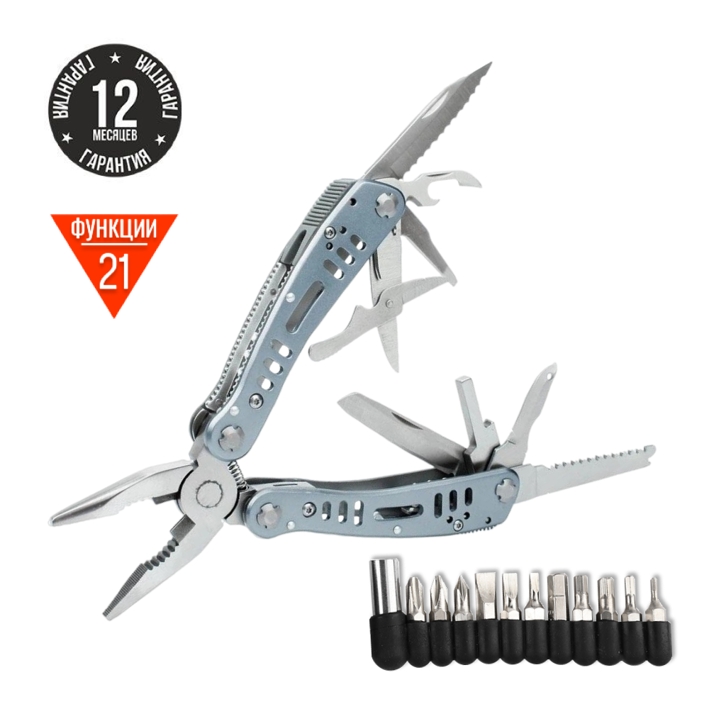 Основной инструмент мультитула — подпружиненные плоскогубцы. Они позволяют надежно удерживать мелкие детали, перекусывать проволоку и работать с предметами различной формы, такими как гайки, небольшие трубки или металлические пластины. Благодаря пружинному механизму плоскогубцы автоматически возвращаются в исходное положение после каждого сжатия. Рука меньше устает, а рутинная и долгая работа становится комфортнее.