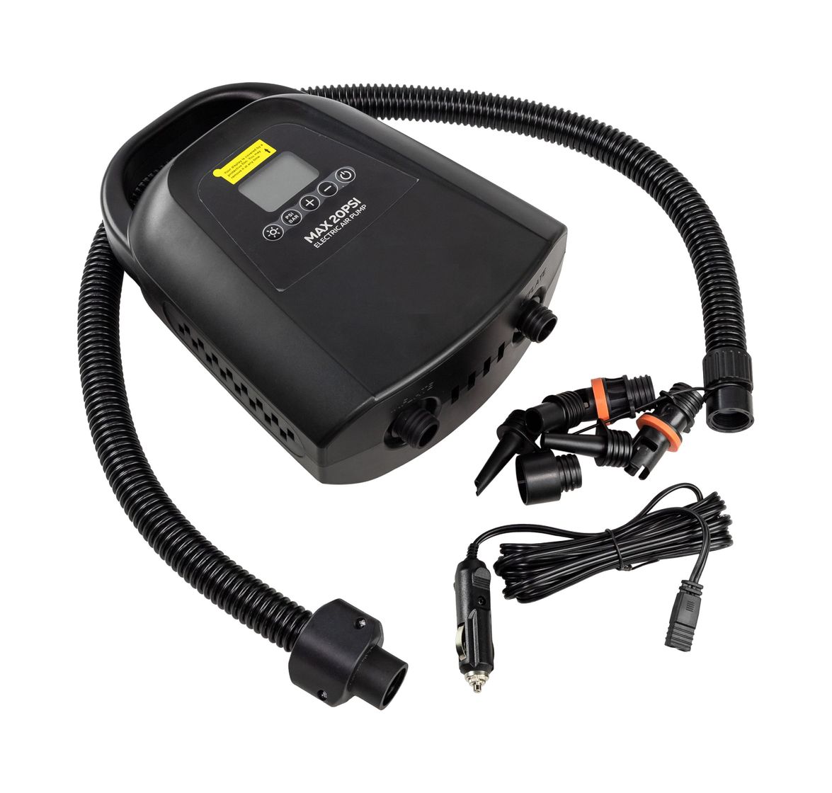 Воздушный насос высокого давления (20 PSI, 1.3 бар) имеет двухступенчатую систему подачи воздуха. Производительность первой ступени составляет 300 литров в минуту, второй – 90 литров в минуту. Насос оборудован функцией автоматического отключения при достижении заданного давления. Насос имеет эргономичную ручку для удобной переноски и поставляется в комплекте с вместительной сумкой.