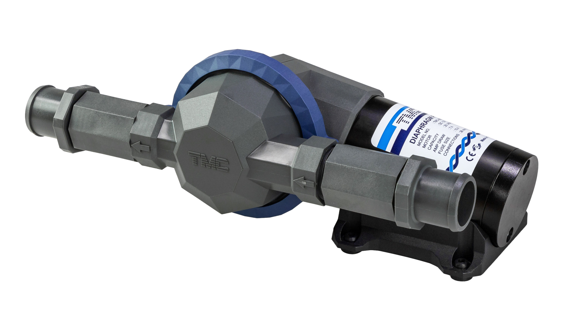 Диафрагменная помпа для откачки фекальных и сточных вод без предварительного измельчения. Не повреждается при сухой работе, не требует наличия предварительного фильтра. Способна перекачивать водо-воздушную смесь. Встроенные невозвратные клапаны большого проходного сечения позволяют пропускать твердые частицы значительных размеров. Патрубки могут быть повернуты на 360 градусов для удобства установки и стыковки со шлангами. Также может быть повернут весь диафрагменый блок. Может быть использована в качестве трюмной помпы (есть возможность замены штатных 38-мм патрубков на патрубки 19-мм). Отличается чрезвычайно высоким напором (высотой подачи жидкости) — до 20 метров. Расчитана на цикличную (не непрерывную) работу