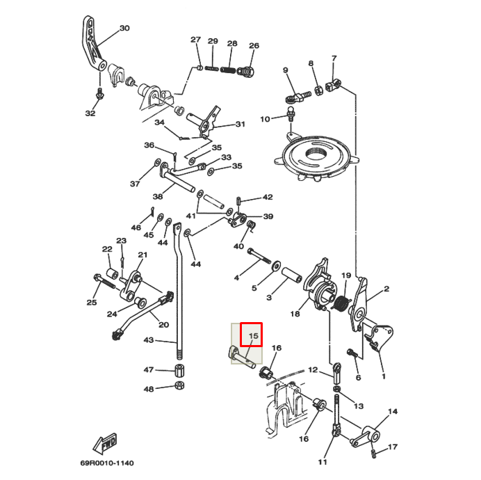 Ось газа (в поддон) Yamaha 20-30 (PREMARINE)