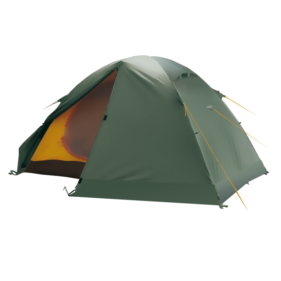 Трехместная палатка для серьезных походов хвастает двухслойной структурой тента: внутренний слой – полиэстер RipStop, внешний тент – плотный Diamond RipStop. Дно палатки имеет высокую степень защиты от намокания – 10000 мм в.ст., по периметру идет снежная юбка. Несущая функция возложена на каркас из алюминиевой дуги диаметром 8,5 мм. Плюс этой модели – два просторных тамбура глубиной 90 см (по тамбуру на вход). Комплектация включает набор трехгранных кольев и светоотражающих оттяжек.