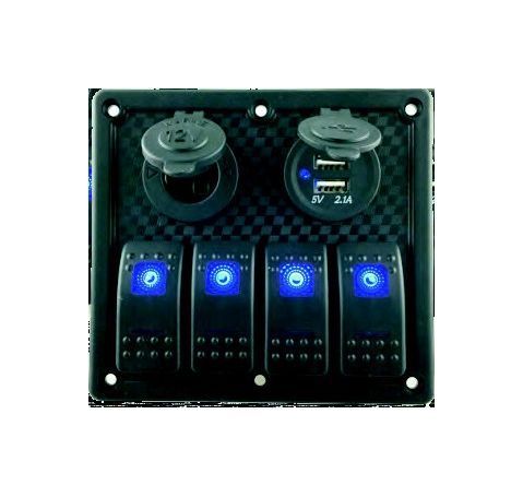 картинка Панель бортового питания 4 переключателя, USB зарядка, разъем прикуривателя