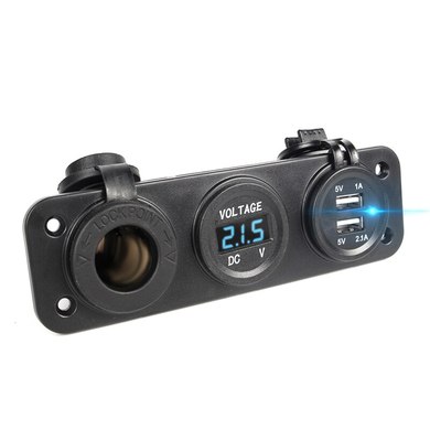 Панель гнезд питания 12V и USB и вольтметр (голубой)