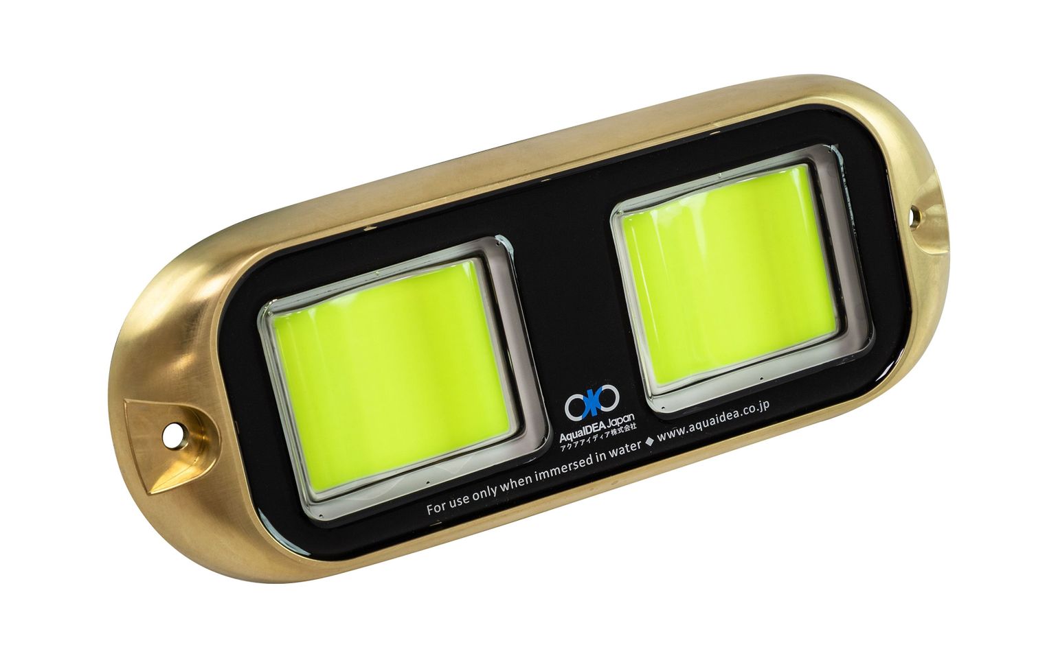 Герметичный огонь для подводного освещения катера или лодки. Бронзовый корпус, закаленное стекло, мощные светодиоды COB LED, 12 В, 60 Вт. Цвет свечения - зеленый.