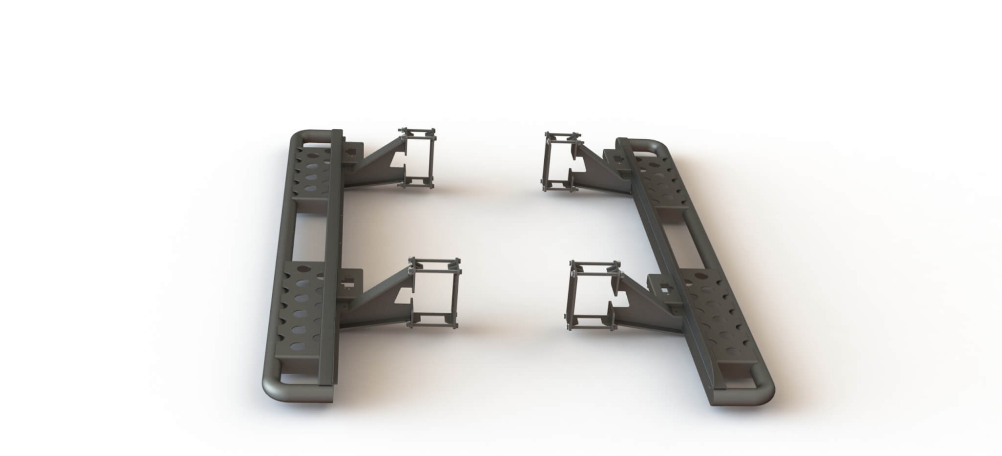 Конструкция порогов STC крайне прочна и долговечна, пороги рассчитаны на эксплуатацию в тяжелых условиях – они изготовлены из цельной стальной трубы без применения сварки. Пороги крепятся к раме с помощью кронштейнов.