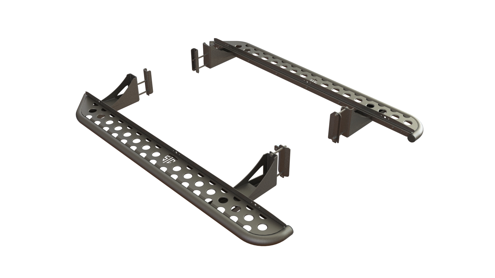 Конструкция порогов STC крайне прочна и долговечна, пороги рассчитаны на эксплуатацию в тяжелых условиях – они изготовлены из цельной стальной трубы без применения сварки. Пороги крепятся к раме с помощью кронштейнов.
