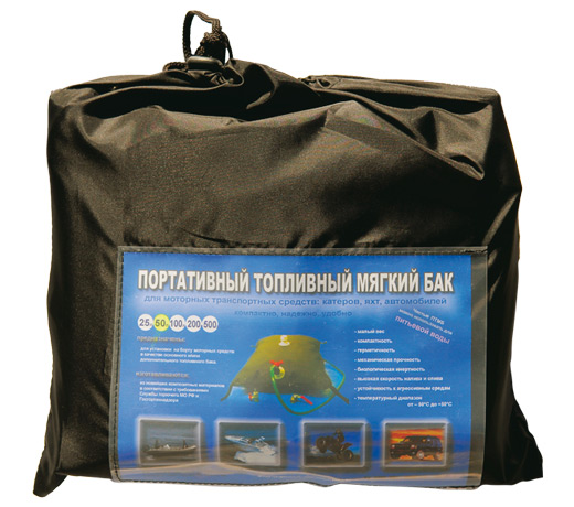 Дополнительный мягкий топливный бак 50л. двух-оболочный, состоит из внутреннего маслобензостойкого вкладыша – композитный полиуретановый полимер плотностью 300 гр./м2, обеспечивающий герметичность изделия и химическую стойкость к нефтепродуктам. Внешняя тканевая силовая износостойкая оболочка топливного бака выполнена из синтетической полиэфирной ткани (типа брезент), что обеспечивает механическую прочность и стойкость к солнечной радиации.