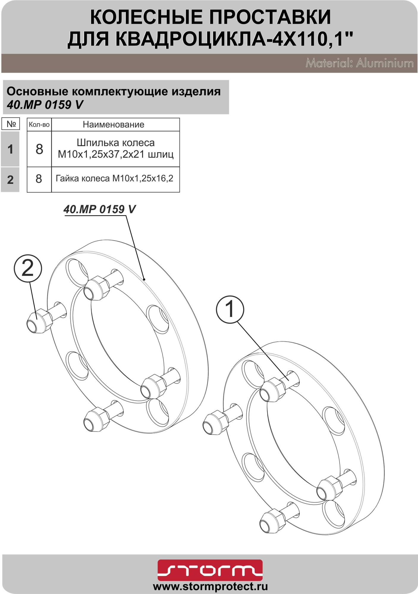 Проставки ступичные 4х137/1"/M10 STORM