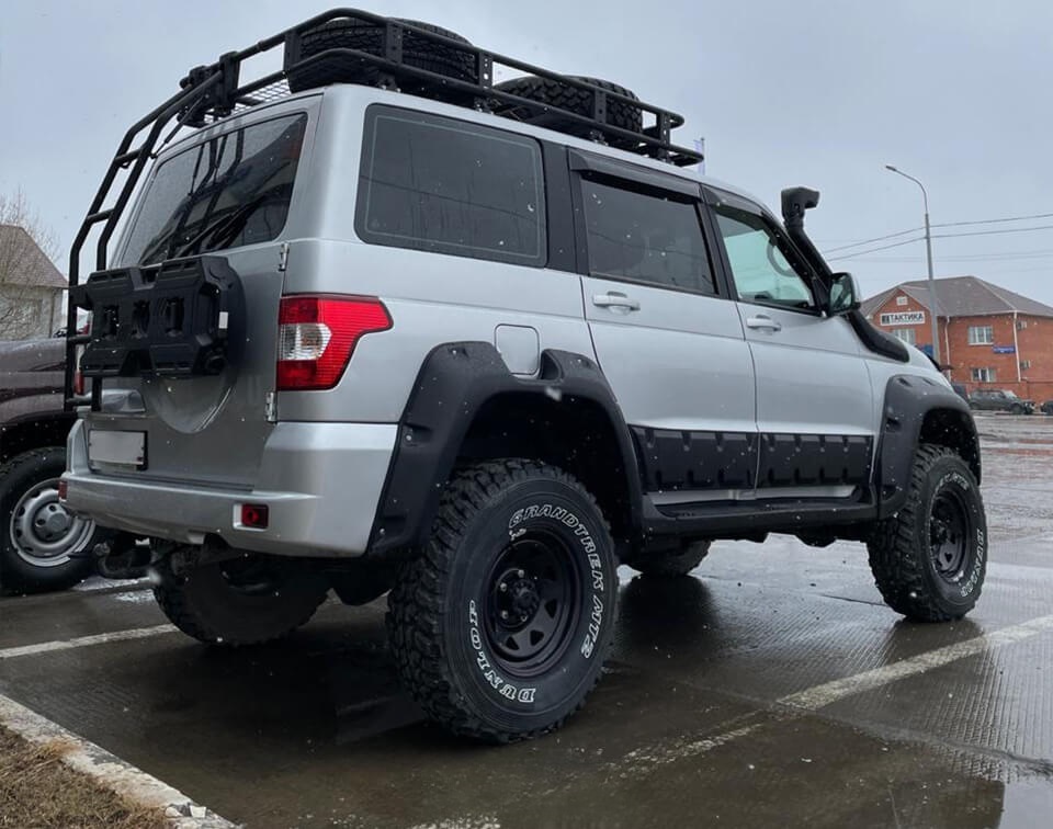 Отступание от кузова 90 мм, позволяет применять колеса максимально возможного диаметра и вылета для УАЗ Patriot.