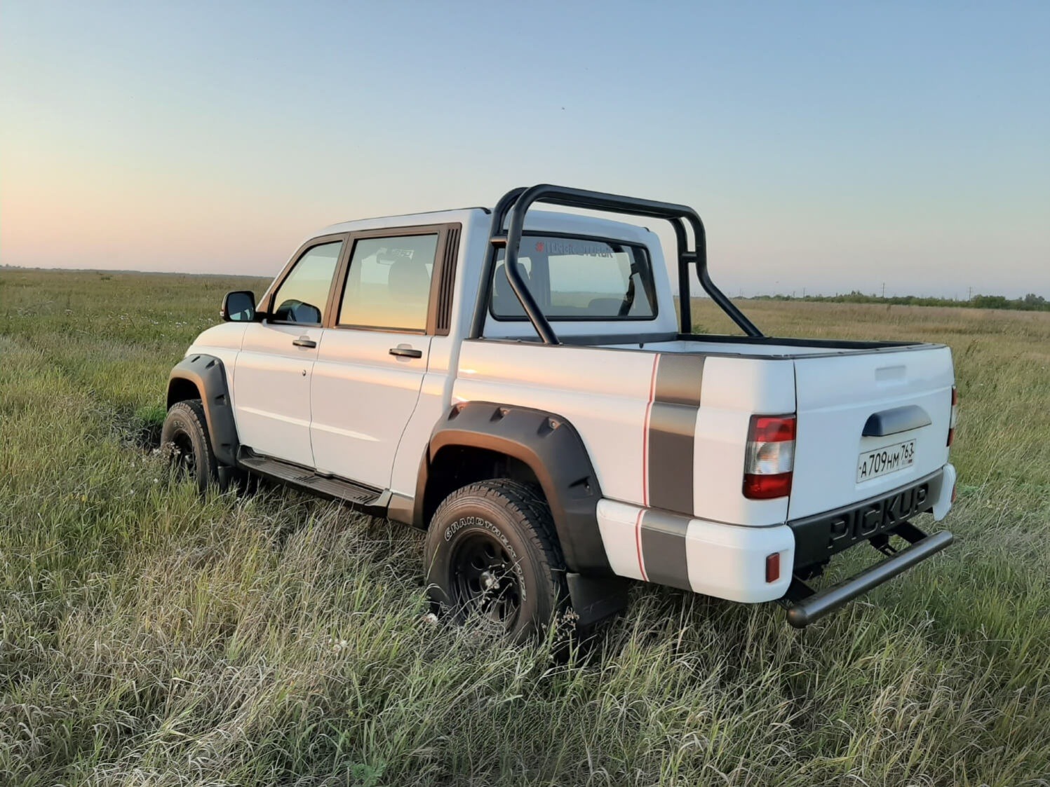 Расширители арок для УАЗ Pickup серии TKP применяются, при создании конфигурации пикапа с применением лифта подвески и кузова, допуская установку колес до 35 дюймов.Расширители арок серии ТКП дают возможность вариаций, как c разной степенью и способом лифта, так с диаметром и вылетом колес.