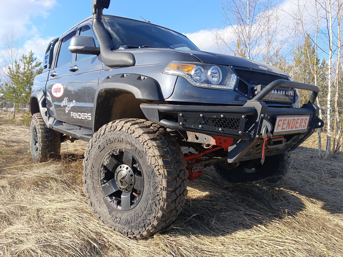 Расширители колесных арок предназначены для установки на автомобиль UAZ Patriot Pickup Рестайлинг , без накладок на бампер, под стандартные колесные арки.