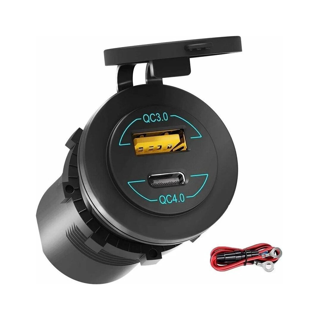 Данное устройство представляет собой автомобильный зарядный концентратор с поддержкой быстрой зарядки QC 4.0 и QC 3.0. Он оснащен портом USB-C PD мощностью 60 Вт и портом USB-A Quick Charge 3.0 мощностью 30 Вт. Устройство способно интеллектуально определять подключенные устройства и обеспечивать им оптимальный ток зарядки. Совместимость: * Устройство совместимо с различными мобильными устройствами, поддерживающими протоколы быстрой зарядки QC 4.0, QC 3.0, PPS и AFC. * Для достижения мощности более 30 Вт - 65 Вт, напряжение аккумулятора должно быть в диапазоне от 20 В до 32 В. Особенности: * Защита от влаги и пыли: Устройство имеет класс защиты IP66, что гарантирует защиту от внезапных брызг воды и проникновения пыли. Водонепроницаемый разъем USB и резиновое покрытие обеспечивают надежную работу в различных условиях. * Индикация: Светодиодный индикатор сигнализирует о корректном подключении к источнику питания, что повышает безопасность использования во время движения. Индикатор загорается только после подключения к источнику питания. Технические характеристики: * Максимальная выходная мощность: 60 Вт * Входное напряжение: DC 12 В - 24 В * Выход PD QC4.0 / PPS / QC3.0 / AFC: 5 В / 2,4 А, 9 В / 3 А, 12 В / 3 А, 15 В / 2 А, 20 В / 3 А (60 Вт) * Выход USB QC3.0 / FCP / AFC / 2,4 А: 5 В, 9 В, 12 В / 3 А (30 Вт). * Рабочая температура: от -40 °C до +60 °C