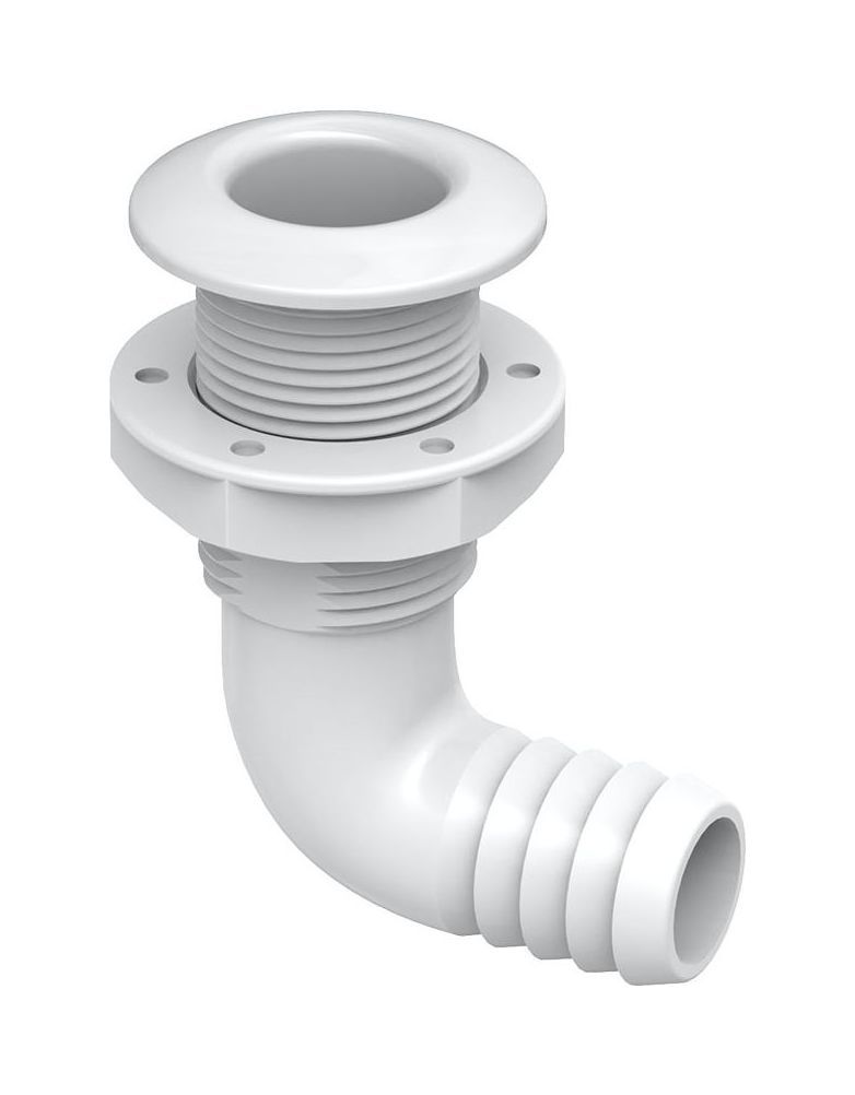 Разъем водосброса угловой с обратным клапаном под шланг 38 мм, белый