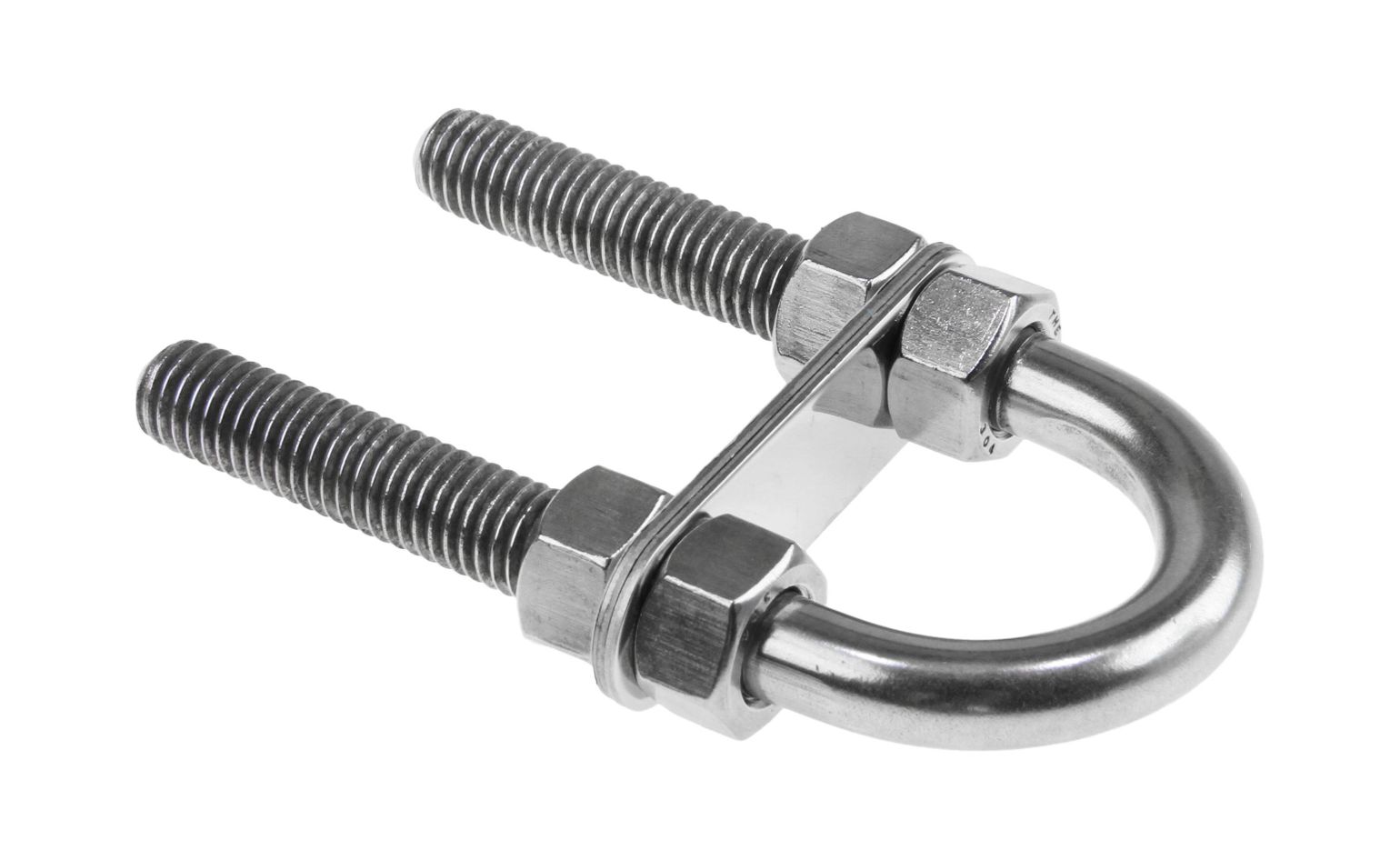 Рым-болт U-образный с крепежными пластинами. Применяется для крепления цепей, тросов, веревок, а также для подъема грузов во время такелажных работ. Выполнен из нержавеющей стали.