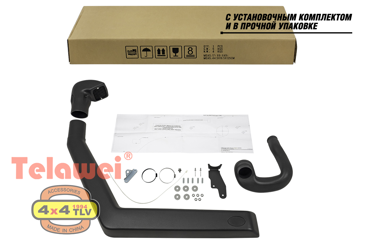 Установка шноркеля относительно проста, и не требует сложной подгонки. Материал: спецполиэтилен LLDPE, легкий, долговечный, ударопрочный, устойчивый к ультрафиолету и предельным температурам. Толщина стенок 3-4 мм