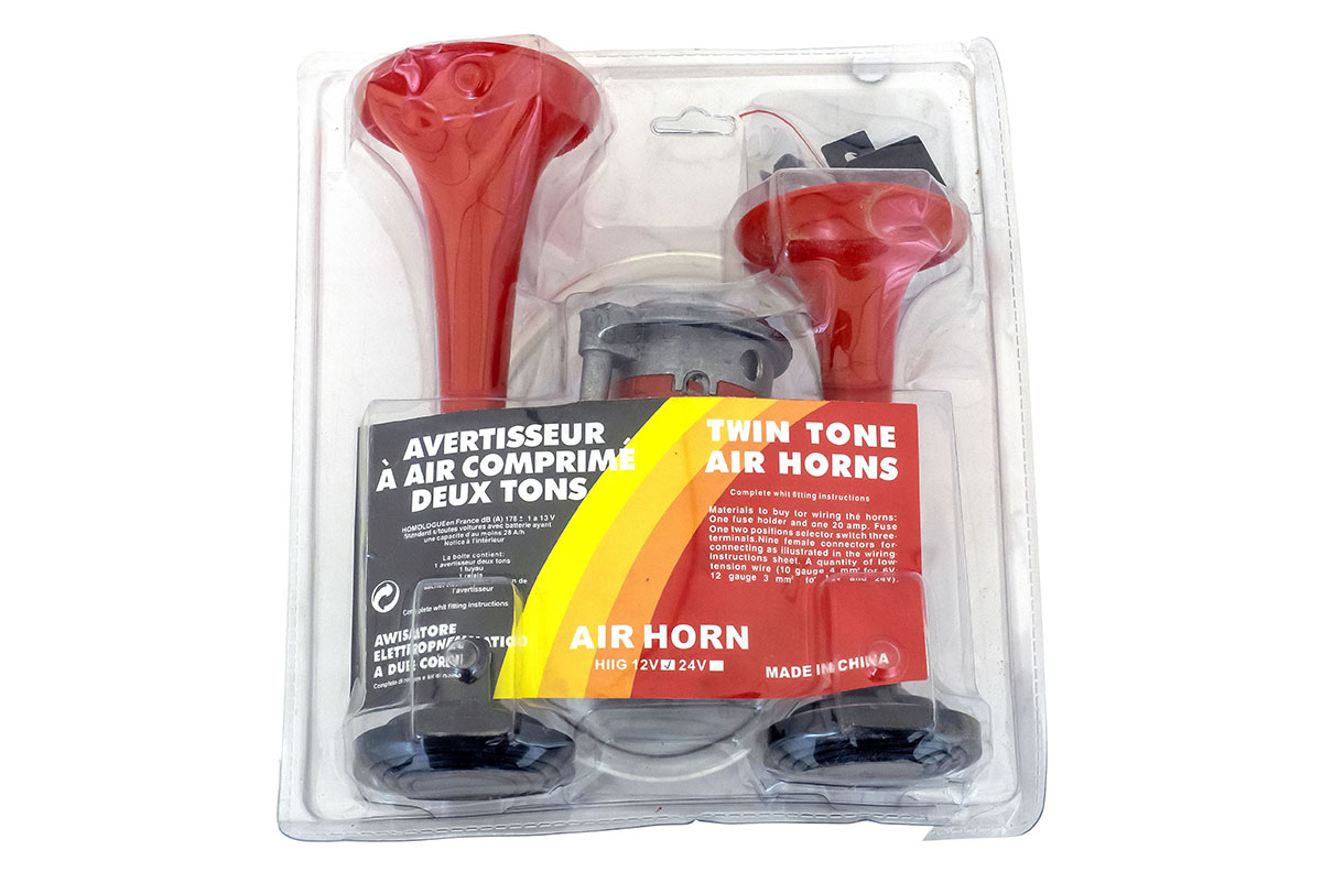 Сигнал звуковой 2-рожка красный 12V 194 мм