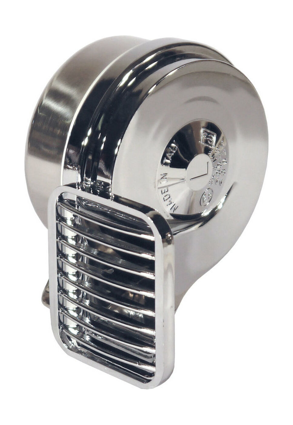 Электрический звуковой сигнал с низким тоном в хромированном корпусе.