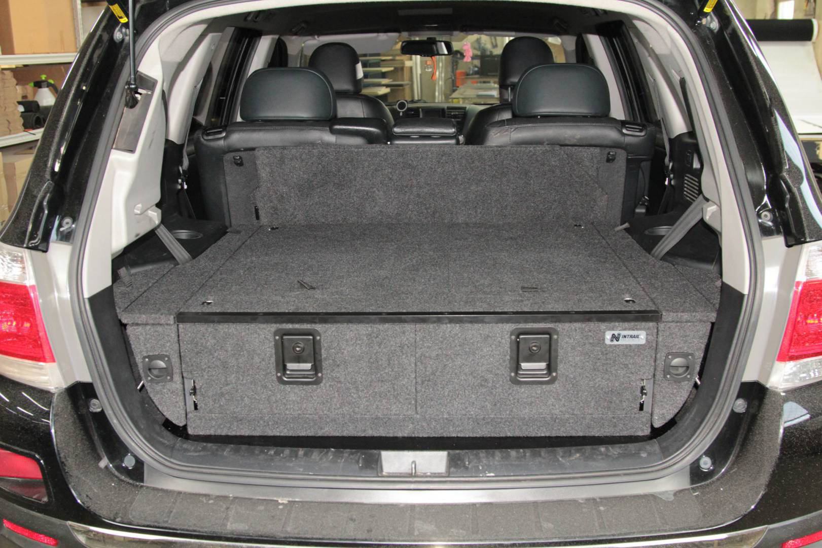 Спальник-органайзер для багажника автомобиля Toyota Highlander выполнен из влагостойкой, ламинированной березовой фанеры.