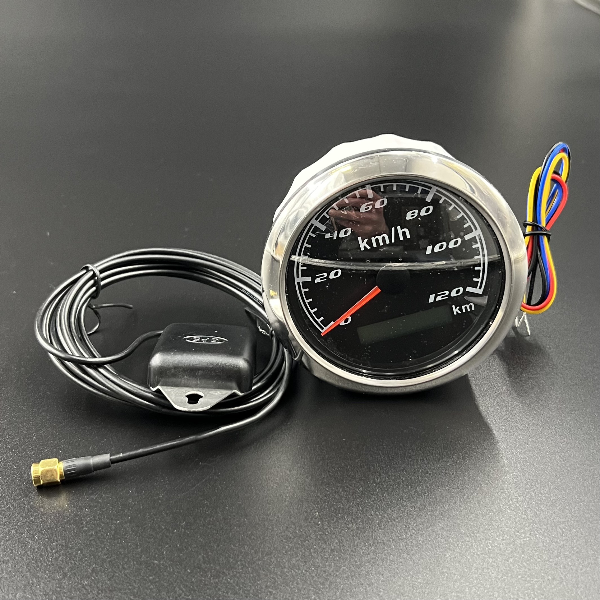 85MM BLACK FACE NEEDLE TYPE AND LCD DISPLAY STEPPER MOTOR MOVEMENT GAUGE SPEEDOMETER 0-120KMH WITH GPS SENSOR _