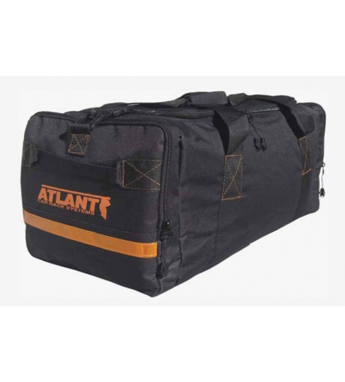 Сумка основная для бокса производства Атлант, предназначенная для перевозки вещей, небольших и легких грузов. Выполнена сумка из водонепорницаемой ткани черного цвета. На боковых частях нанесены светоотражательные элементы. Переноска осуществляется на верхних ручках, соедияемых липучкой, либо длинным регулируемым по длине ременем с пластиковым карабином. Дополнительно добавлены небольшие ручки сбоку. На дне сумки снизу нанесены резиновые антискользящие зубцы. Для перевозки особо мелких грузов по покам есть небольшие отделения. Все отделы закрываются на молнии. Переносная сумка вмещает обьем 30 литров, она имеет размеры 610*340*280мм.